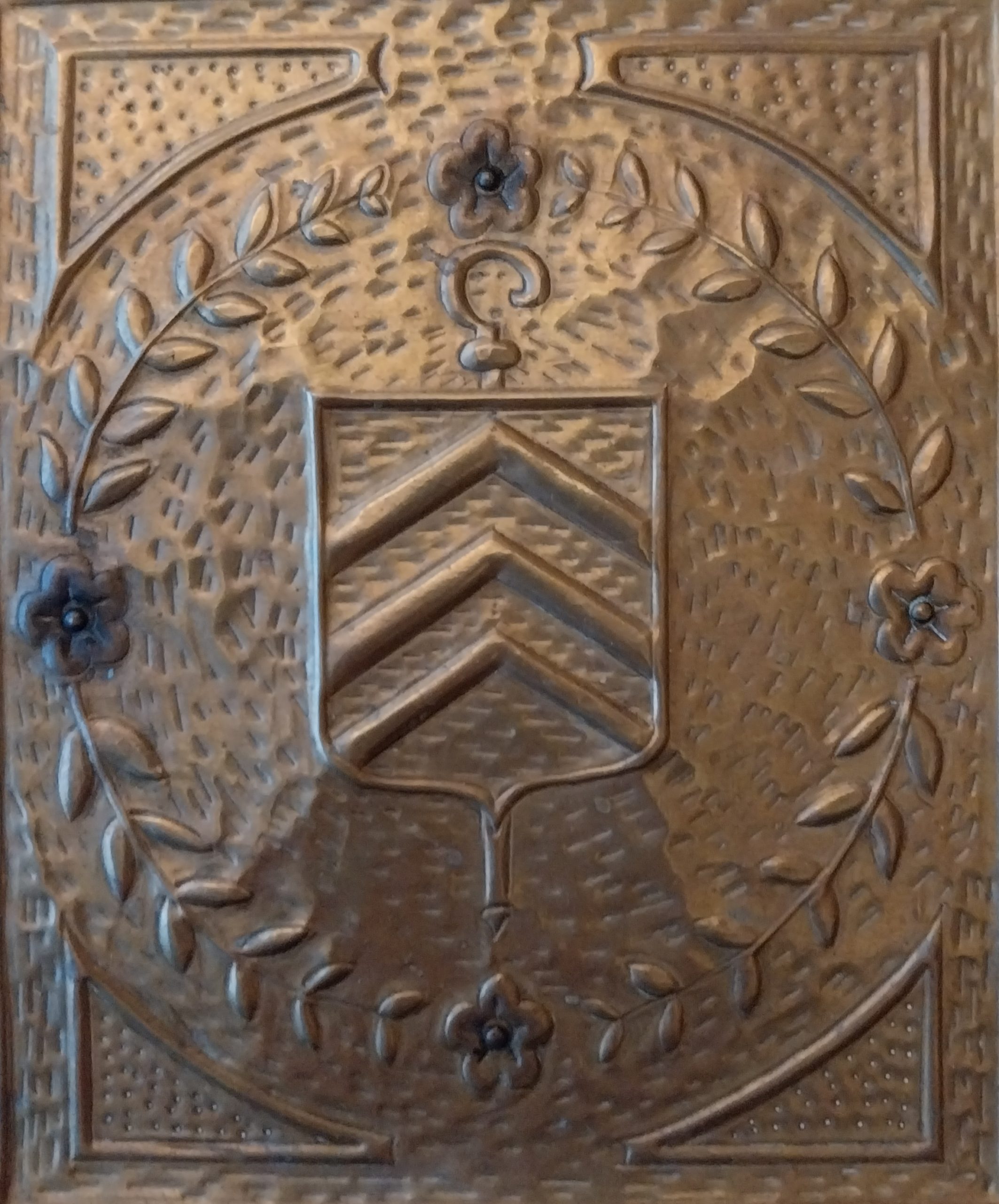 À nouveau au Trésor, une châsse en cuivre, donnée par les Ursulines en 1924, porte sur son couvercle, d’un côté les armes du chapitre de Sainte-Waudru, de l’autre celles du chapitre sonégien.